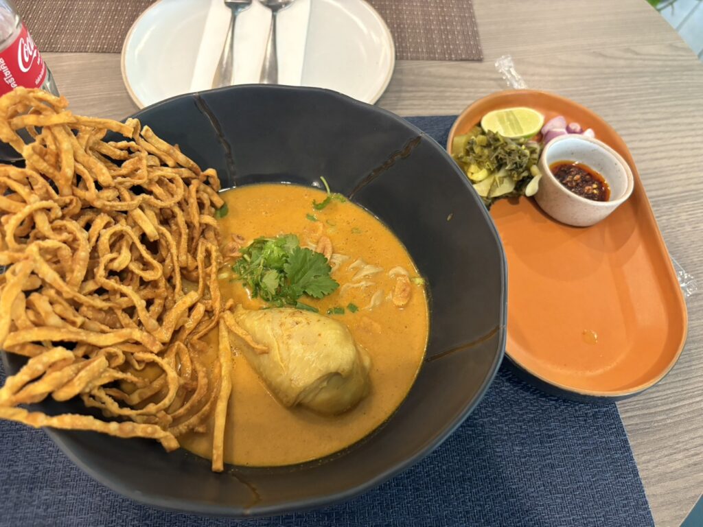 こうして疲れた体で向かったのはSIAM ORIGINSというサイアム博物館敷地内にあるレストラン。カオソーイという揚げた麵にカレーっぽいソースと煮込んだ手羽先が一緒になったタイ料理を注文。麺がパリパリ、手羽先は柔らかく非常においしかったです。